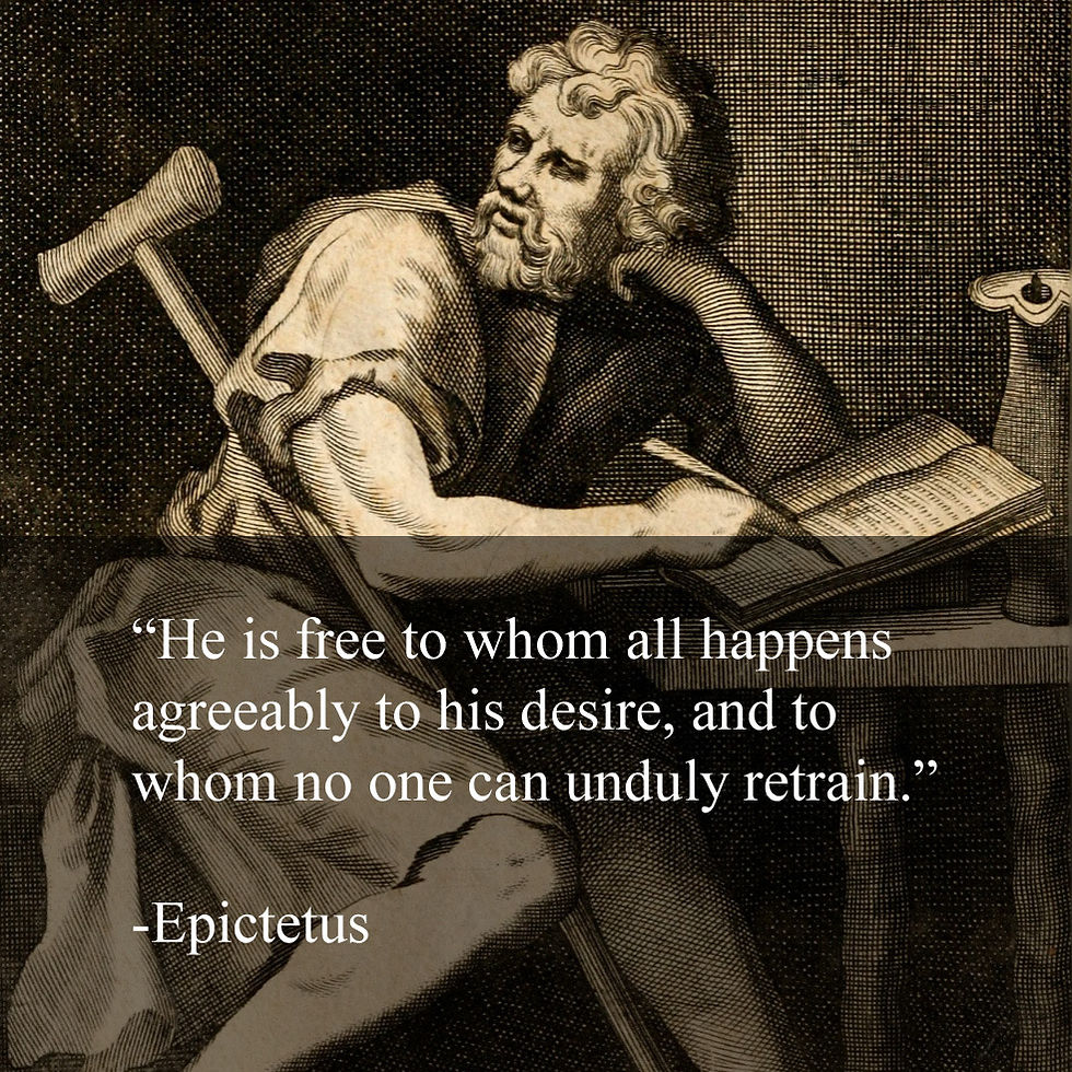 “He is free to whom all happens agreeably to his desire, and to whom no one can unduly retrain.”-Epictetus